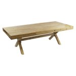 A beautiful, solid table constructed from pine with a great length and natural appeal.