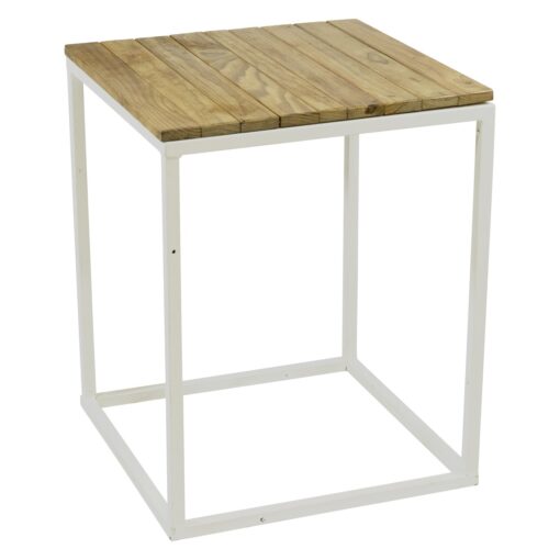 A round table with a natural, wooden counter-top and sturdy metal frame, fit for 10 people and a versatile option for any event.